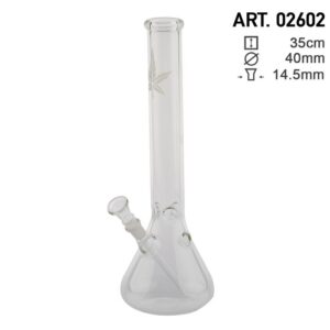 Klaasbong, luksusklass, kõrgus 39 cm.Klaasi paksus 7 mm, aukudega jää jaoks, valmistatud kvaliteetsest kuumakindlast borosilikaatklaasist. Toru enda küljes on perkolaator, mis jahutab toodet ja muudab selle väljapääsu juures pehmemaks.